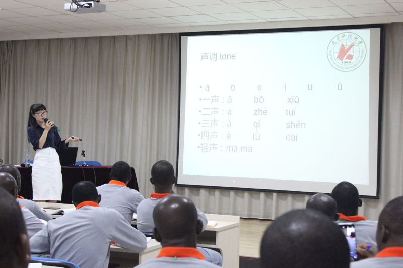 9月9日晚,集團公司一樓多功能媒體教室傳來一陣陣洪亮的漢語拼音朗讀聲,聲母、韻母一個都不少?!癰、p、m、f……”、“zhi、chi、shi、ang、eng……”這是項目培訓組為尼日利亞學員組織的“學說中國話、認識中國字”培訓課程開課了!今天上第一課“我叫大衛(wèi)”。為了把中文課培訓組織好,培訓組可沒少下功夫。選教材、定課時、請老師,每一項都是精心籌劃,最后選定了遼寧科技大學專職教授漢語的老師為學員們授課。老師教的認真,學員學的認真。一節(jié)課下來,學員們學漢語的熱情被全面激發(fā)!據(jù)項目培訓組負責人介紹,前兩月共安排12節(jié)課,課程設計也借鑒了漢語教學的基礎課程安排,從相互介紹、確認,時間、方位表述,日常需要等方面循序漸進,希望能夠達到一個最佳學習效果。學習中間會根據(jù)學員掌握情況進行調整,后期再結合專業(yè)課培訓情況進行課程設計。